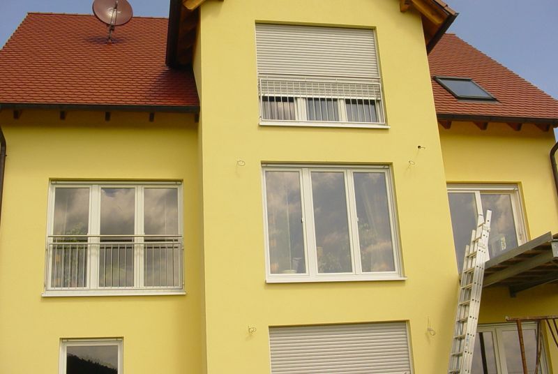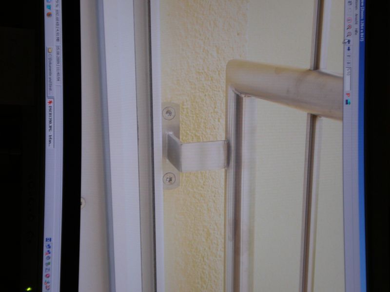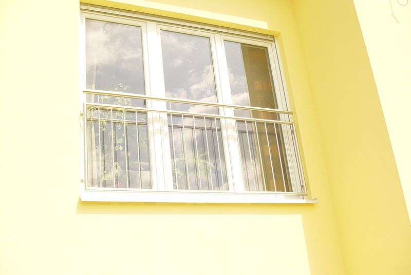 Französische Gitter in der Mauerleibung Edelstahlgitter mit Handlauf und umlaufenden Rahmen